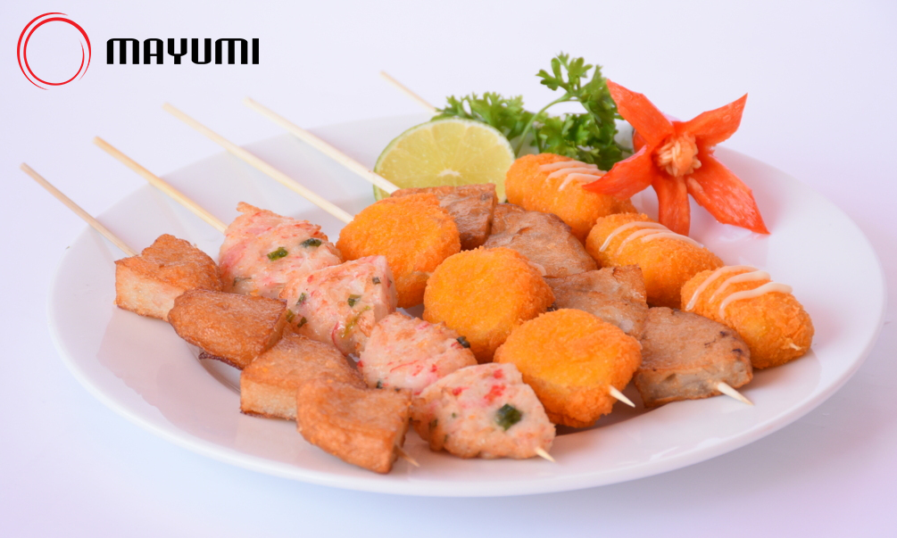 - Step 1: Buy Mayumi Foods, full of materials: Fish Tempura, Surimi Crab Burger, Surimi Scallop, Cuttlefish Tempura, Salmon Croquette.